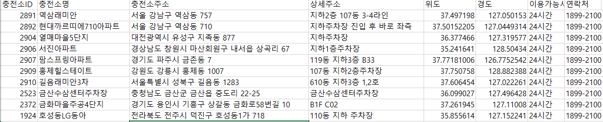 공공데이털 포털에서 경위도 좌표가 포함된 csv 파일을 예제로 테스트해보겠다.