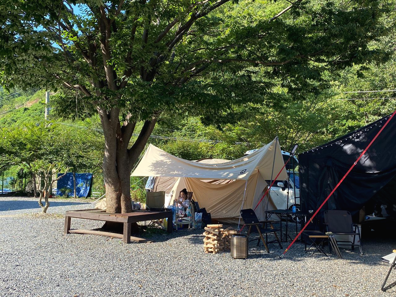 나무 그늘 아래 이쁜 텐트랑 타프를 보니 갬성(?)이 조금씩 나타났다.