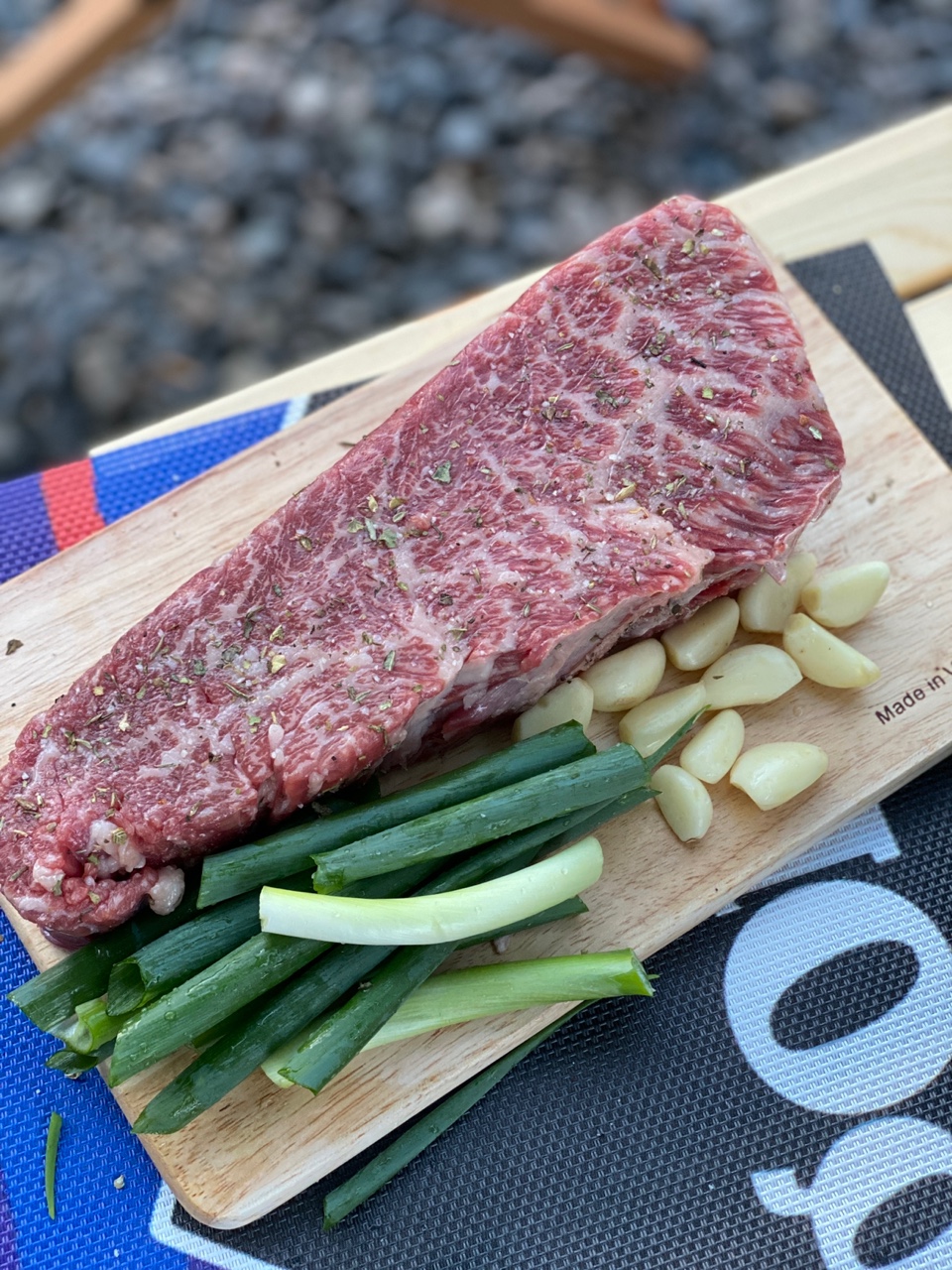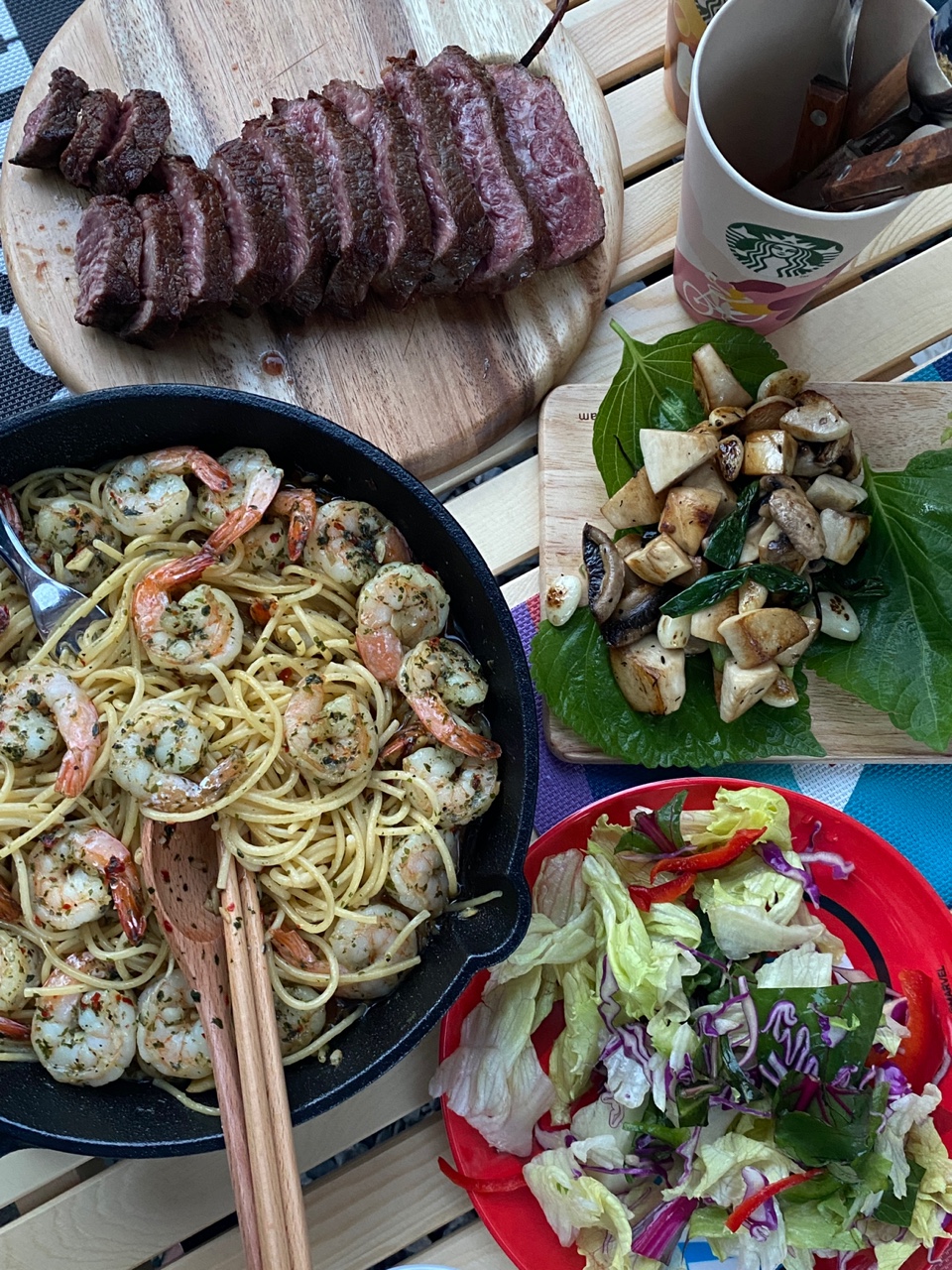 드디어 첫 캠핑의 저녁은 한우 채끝살 스테이크랑 감바스 파스타