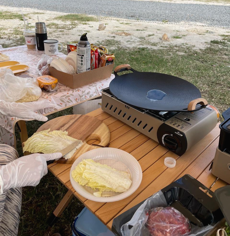 와이프랑 친구는 먼저 친 타프 아래 점심 한참 준비 중이었다.
